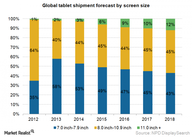 Rival research company NPD forecasts that larger tablets are poised to grow and will take market share from smaller tablets -- from 2% share this year up to 12% by 2018.