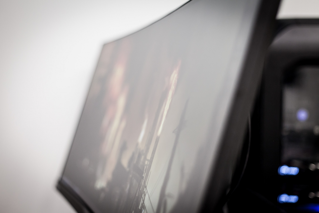 Equipped with an AH-IPS display, the Predator X34 provides excellent viewing angles, a must for such an oversized screen. The display features a “frameless” design indicating the absence of a physical frame surrounding the viewport. Notably, there’s still a black border as with most other frameless designs. The panel is treated with a light anti-glare coating granting it a somewhat matte appearance. This less aggressive treatment strikes a good balance by eliminating mirror-like reflections without becoming too “grainy”.