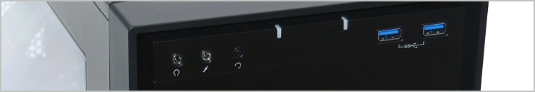The front bezel looks very slick and while there are visible I/O connectors, they do not spoil the design. At the top, you will find a pair of audio jacks, two USB 3.0 ports along with a small reset button. The power button is located right at the top and it features blue LED lights on either side. The effect is pretty cool.