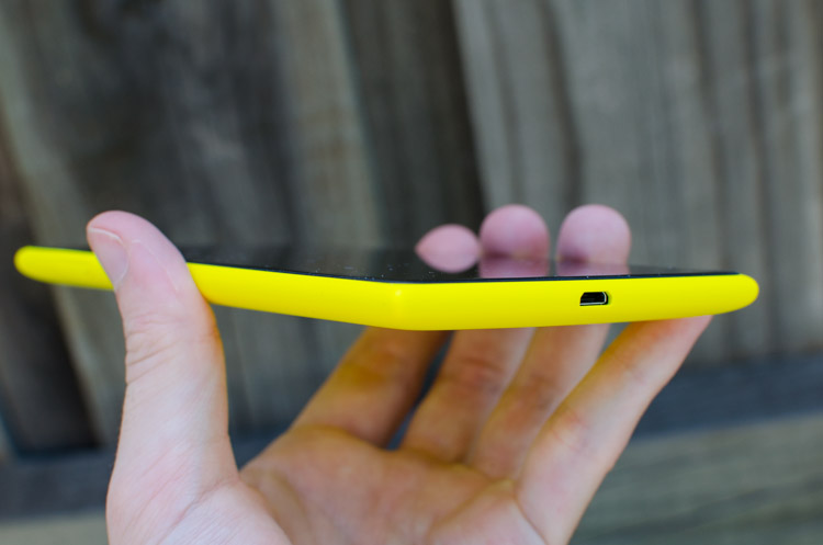 The polycarbonate unibody is available in four colors: you can get a standard black or white, or for the adventurous there's also red and yellow. As you can tell from our review photos, we got the yellow model and its quite striking. Deeply infused into the plastic, the color is high quality and will surely turn heads whenever you pull out the device from your pockets, especially considering the size of the phone itself.