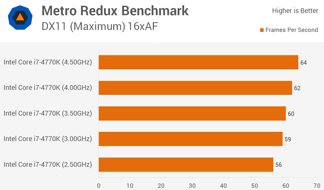 Overclocking the Core i7-4770K helped gain a few extra frames per second but certainly nothing game changing.