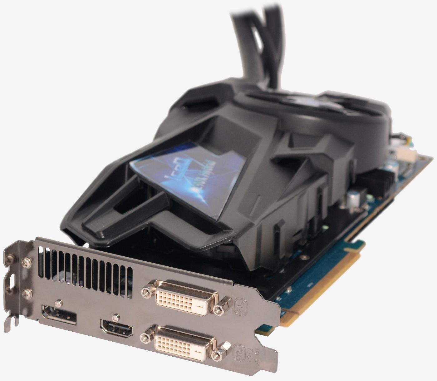 The VRAM and GDDR chips are covered by a thin heat spreader which is fed cool air by a 92mm fan. HIS has included a rear back plate that cools the memory chips on the backside of the PCB.