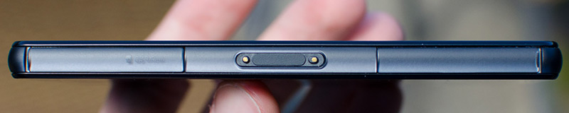 The right-hand edge of the Z3 Compact has all the device’s critical buttons: the small, circular power button sits immediately above the volume rocker; and further down you’ll find the dedicated two-stage camera button. For a device this small, the power button feels a good 10-20mm too low for comfortable operation, although I’d rather have it in the current position than along the top edge.