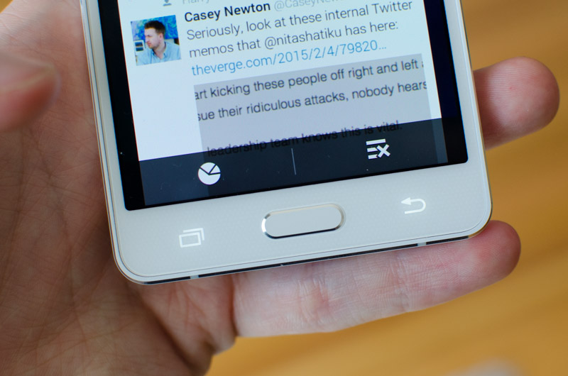 As many Android devices move to on-screen buttons, I’m feeling less sold on capacitive buttons found below displays, as often they can be harder to reach and operate. This can be a concern for the app switcher button to the left of the physical home button, which for a right-hander like me is a stretch to reach. The back button on the right is in an acceptable location, though moving to on screen buttons would make all three easier to operate.