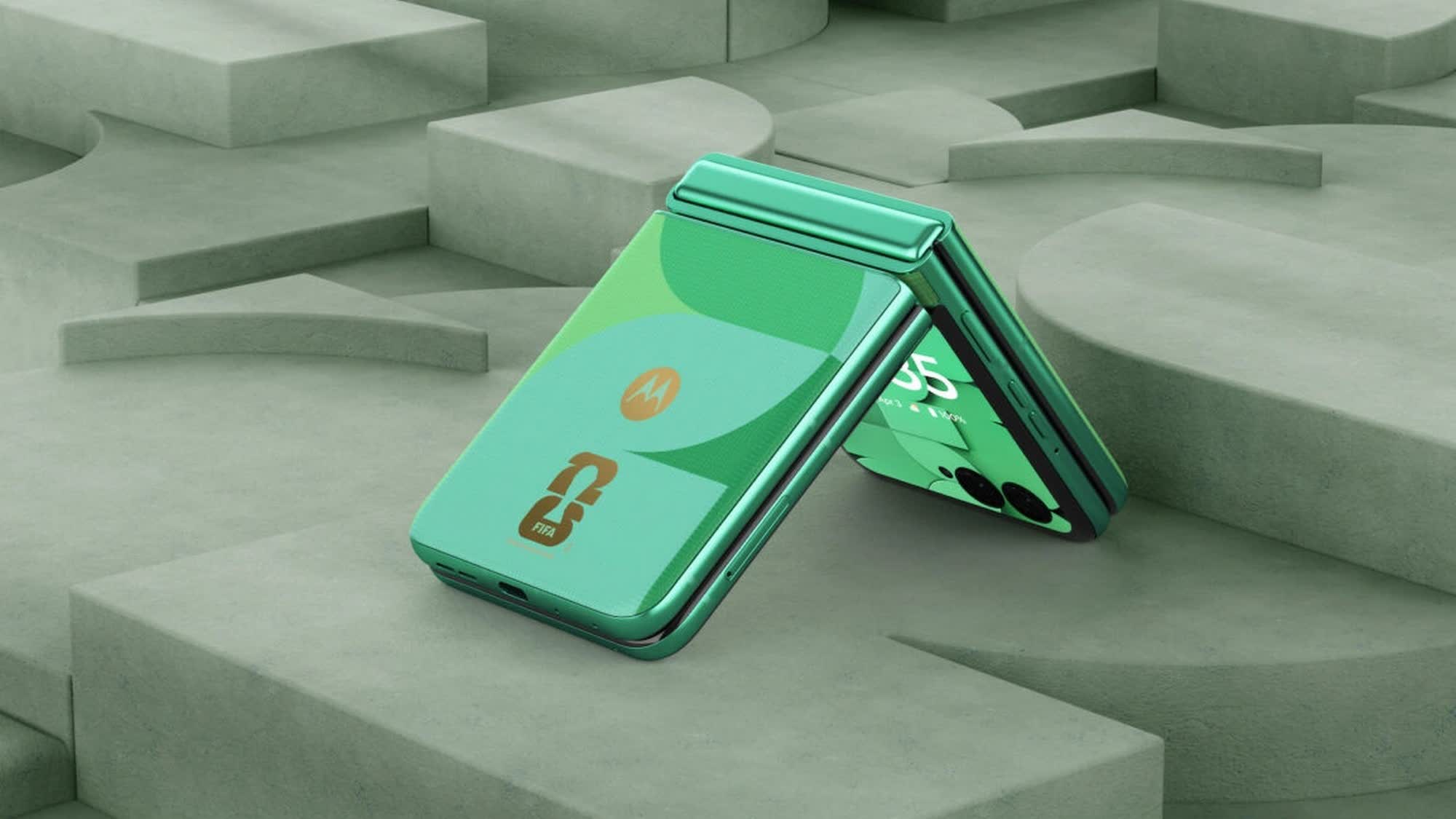 As the official smartphone partner of the 2026 FIFA World Cup, Motorola also unveiled a World Cup 2026 Edition of the Razr 2025. The device is identical to the original in terms of hardware but features subtle nods to the tournament, including a FIFA World Cup badge on the back, soccer-themed wallpapers, and new ringtones.