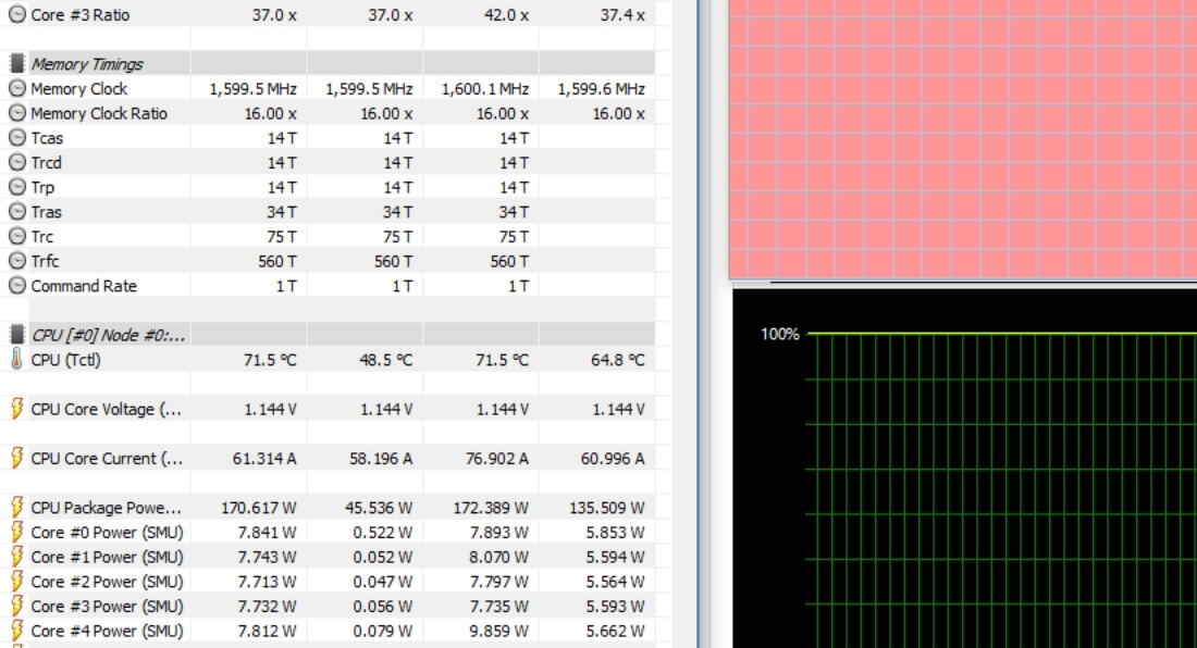 With the custom paste still applied, I reverted back to the stock out of the box clock speeds and now the 1950X was hitting just 71 degrees.